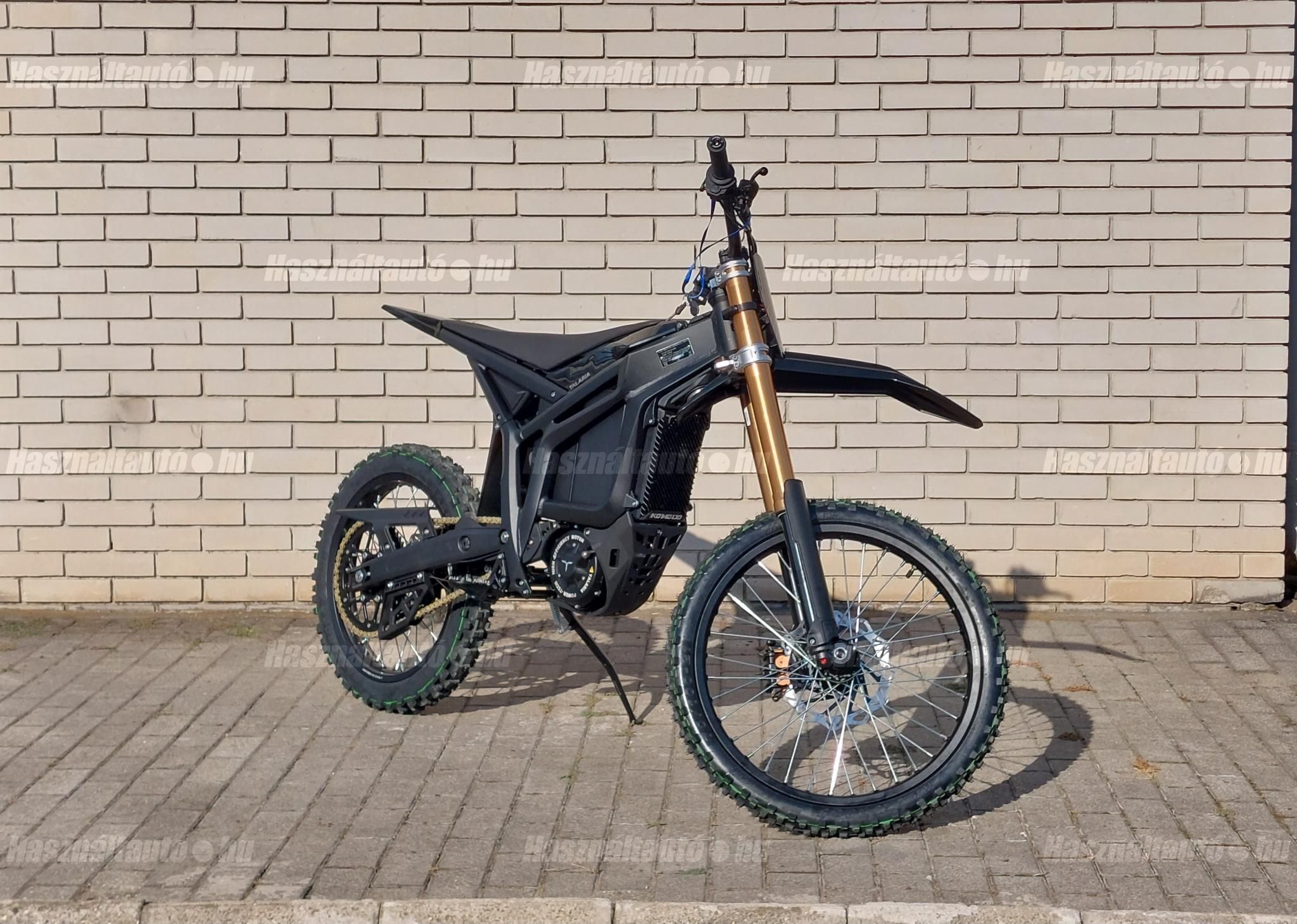 A Talaria Komodo TL6000 MX-CE új szintre emeli az elektromos terepmotorozást. Ez nem egy újabb hobbigép, a Talaria ezzel a modellel egyértelműen belépett a nagy köbcentis, off-road kategóriába, ahol már nemcsak más elektromos riválisokkal, hanem a klasszikus, benzines versenytársakkal is egyenrangú lett. A Komodo nem csupán egy új típus a Talaria kínálatában, hanem egyfajta technológiai bemutató is. Olyan motorosok számára készült, akik aktívan használják gépüket endurózása, tereptúrákra vagy akár versenycélokra. A Talaria Komodo 32 kW-os csúcsteljesítménye (1 perces időtartamig) és 8.6 kW-os névleges teljesítménye komoly motoros tudást igényel. A rendszer 97.2 V-os, 45Ah-s Greenway lítium-ion akkumulátorral működik, amely 4,32 kWh kapacitásával nemcsak nyomatékos gyorsítást, hanem hosszabb, intenzív terepezést is lehetővé tesz. Az Akkumulátor tömege: 24,4 kg, a teljes tömeg akkumulátorral: 98 kg, a maximális sebesség: 105-115 km/h, áttételtől függően, EU szabványú 12A gyorstöltővel. Első villa: Fordított, dupla kamrás levegős teleszkóp, 250 mm rugóúttal. Az első teleszkóp egy 6,7 kg tömegű, 850 mm hosszúságú és 250 mm rugóúttal rendelkező, kétkamrás (dual chamber) kialakítású felfüggesztés. Az első teleszkóp felső csöve 7005-Ös alumíniumötvözetből, míg az alsó csöve 6061-es alumíniumból készült, melyek könnyű, mégis erős szerkezetet biztosítanak. A rendszer támogatja a kompressziós csillapitás és a visszacsapódási csillapitás állítását is, így a vezető a menetkörülményekhez igazíthatja a felfüggesztés viselkedését a kényelem és teljesítmény érdekében. Hátsó felfüggesztés: Levegős központi lengéscsillapitó, 90 mm rugóúttal, Kerékméret: 21 col elől, 18 col hátul - ez a klasszikus enduro méret, Váz: Kovácsolt alumíniumból, rendkívül merev, mégis könnyű konstrukció. Elérhető fekete színben. ÁRA AKCIÓS A KÉSZLET EREJÉIG (EREDETI ÁRA 2.690.000,- Ft)! Kíváncsi vagy a konkrét lehetőségekre? Ne várj tovább, beszéljünk róla! További információk személyesen vagy telefonon!