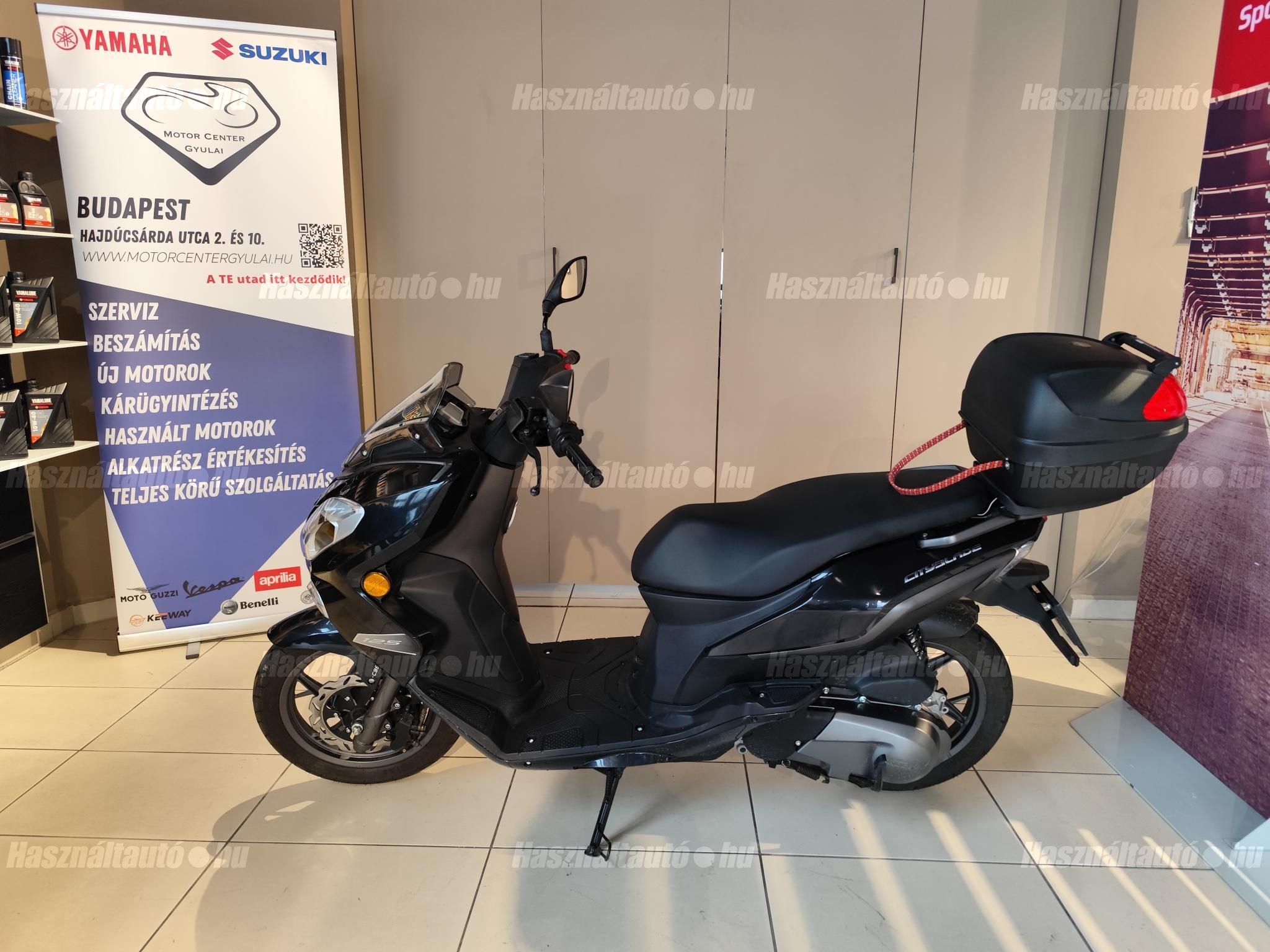 Eladásra kínálunk egy Magyarországon újonnan forgalomba helyezett, egyetlen tulajdonos által használt Keeway Cityblade 125, injektoros, nagy kerekő robogót. Ideális városi, agglomerációs közlekedésre, kisebb túrákra. Nagyon alacsony fenntartási költségekkel. A kevés kilóméter miatt a motor nagyon szép állapotban található. Jár hozzá egy zárható doboz, pótféklámpával. Megtekinthető szalonunkban, esetleges kérdéseitekkel keressetek bizalommal telefonon. Autó-motor beszámítás lehetséges.