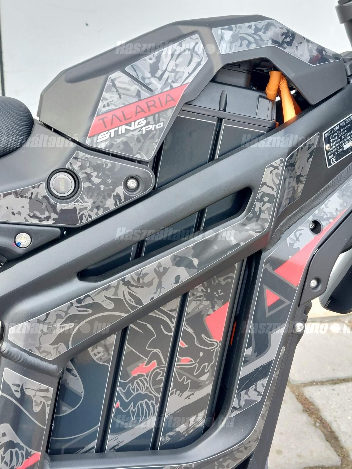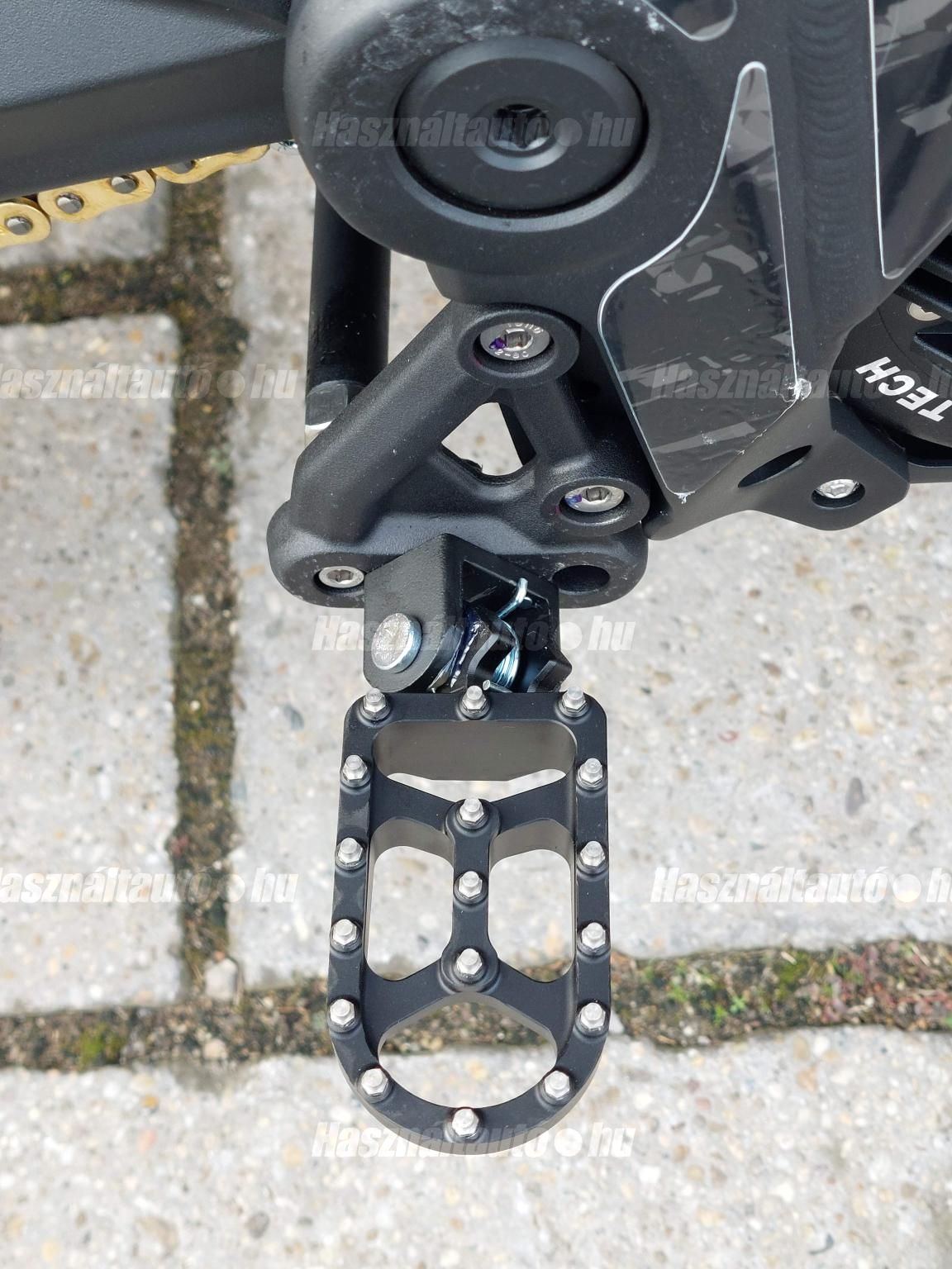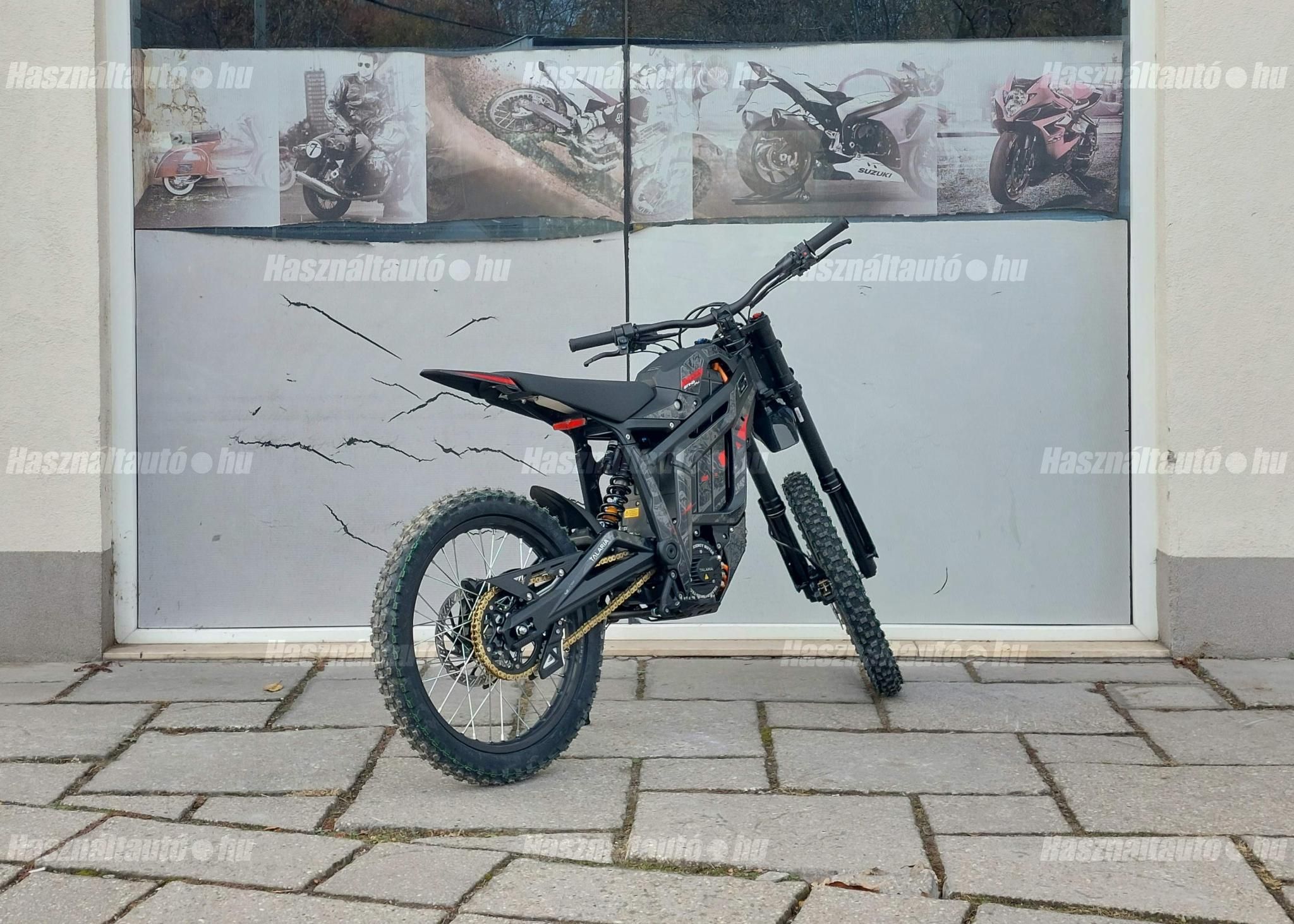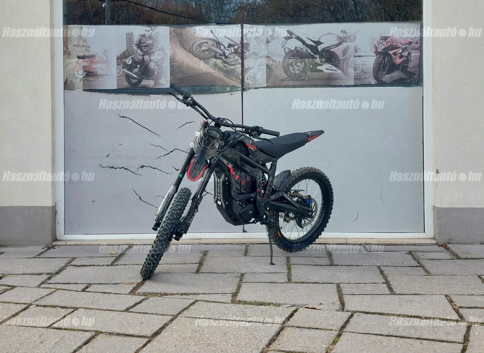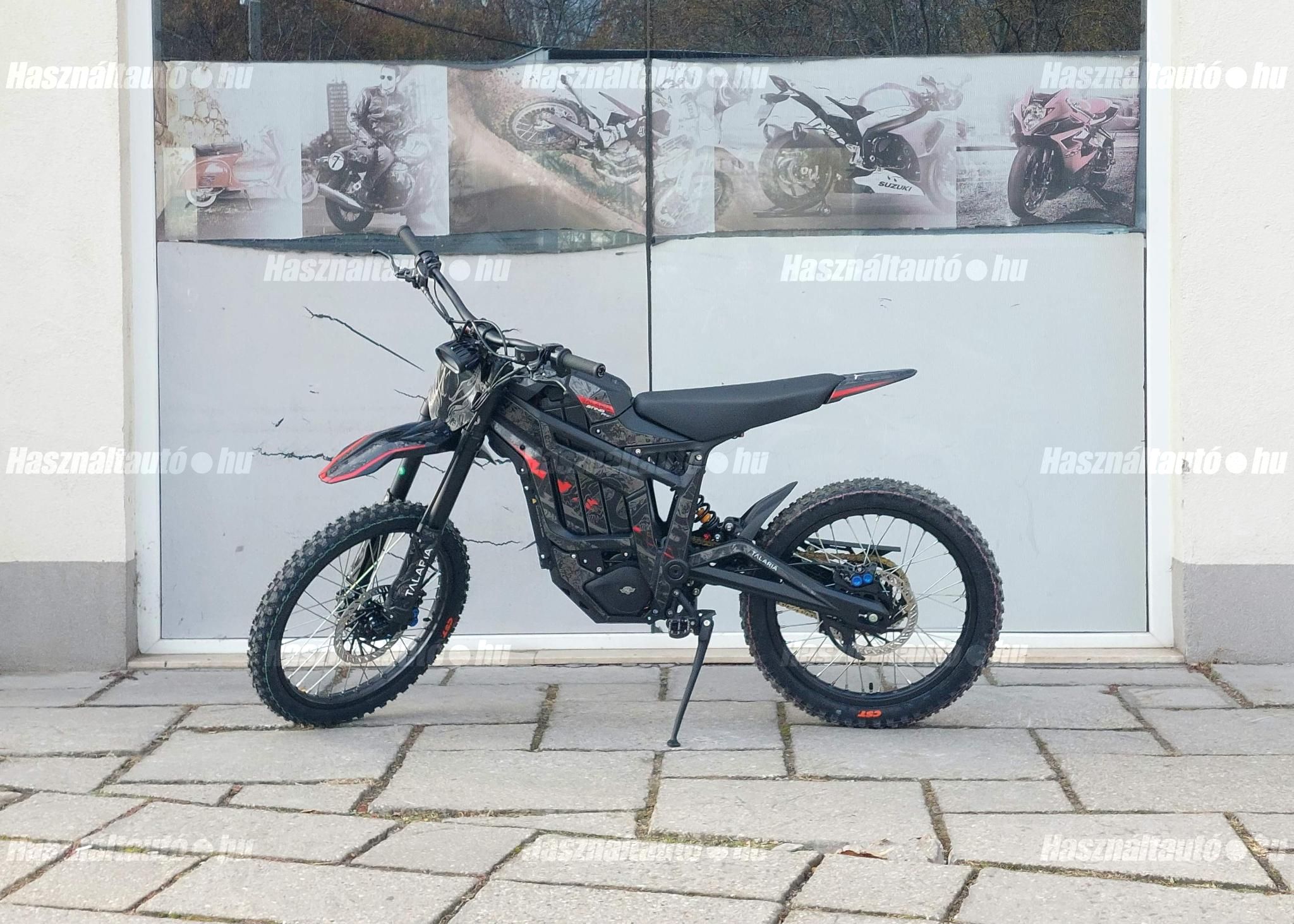 Az új Talaria TL 5500! Az idei évben nemcsak a Sting R-t (MX4) finomhangolták annak érdekében, hogy még jobb élményt nyújtson a motorosoknak, hanem a 2024-es év nagy durranásaként piacra dobták a Talaria Sting Pro-t. A Talaria MX5 jelentős újítást hoz az előző modellhez, az MX4-hez képest. A továbbfejlesztett IPM (Interior Permanent Magnet) motor, minden eddiginél nagyobb és jobb mágnesekkel és jobb hűtőrendszerrel. Ez jobb hatásfokot, jobb hőleadást, és ami a legfontosabb, sokkal nagyobb megbízhatóságot jelent. Ez a motor nagyobb fordulatszámra képes, mint a régebbi motorok, és robusztusabb teljesítménygörbét ad. 95%-os hatásfokú, ami a valaha volt leghatékonyabb Talaria motor! Nagyobb akkumulátor kapacitás: 60 V-ról 72 V-ra növelték az akkumulátor rendszerfeszültségét. Ez nagyobb nyomatékot, nagyobb fordulatszámot és szabályozottabb hőmérsékletű motor-működést tesz lehetővé. Az akkumulátor 40Ah / 72v azaz 2880 Watt óra kapacitású, és Samsung 50S 21700 (5000 mAh) cellákkal készül. Szintén újdonság az MX5 teljesen eltávolítható akkumulátor-fedele, amely jelentősen megkönnyíti az akkumulátor mozgatását. Az akkumulátorhoz már egy 15 amperes gyorstöltő tartozik. Vezérlő: a 13,5 kW-os sebesség limit nélküli vezérlő a TL4000 8.5 kW-os vezérlőjével szemben egy nagy ugrás, és egyenletes, kiszámítható teljesítmény leadásra lett hangolva. Továbbfejlesztett fékrendszer: mind az első, mind a hátsó féknyergek, valamint a fékbetétek méretét megnövelték, és a Sting Pro-ban már 220 x 3,0 mm -esek a féktárcsák. Vagyis, a fékbetéteket a TL4000 betéteinek majdnem kétszeresére növelték méretben, melyek a Talaria által kifejezetten ehhez az elektromos terepmotorhoz fejlesztett fémkeverékből készülnek. Ez hihetetlen különbséget jelent a fékerő, a zökkenőmentes fékműködés, a fék élettartama és a fékezés megbízhatósága terén. Összességében nagyjából 20%-kal nagyobb fékezőerőt és hőleadást biztosít. Szabályozható regeneratív fékrendszer: a Talaria legújabb funkciója, amely kizárólag a Sting Pro-ba került beépítésre, az a szabályozható regeneratív fékezés. A Talaria termékcsaládban először, egy másodlagos, ujjal működtetett változó regen gomb is található a kormányon. Ez a fékkarhoz hasonlóan működik, és simán szabályozza a kívánt regenerációs szintet. Minél erősebben nyomjuk, annál jobban érvényesül a regeneratív fékezés anélkül, hogy a fékek túlmelegedésével, a hatékonyság és a hatótávolság növelésével, valamint a mechanikus fékrendszer megőrzésével kapcsolatos problémák merülnének fel. A változtatható regeneratív fékezés eddig csak az utángyártott vezérlőkkel felszerelt csúcskategóriás egyedi motorokon volt elérhető, most már viszont a Sting Pro alapfelszereltsége. Felfüggesztés és hajtáslánc: az MX5 specifikusan ehhez a modellhez tervezett első és hátsó felfüggesztést kapott. A motor vastagabb, 428-as lánca kétszer olyan erős, mint az MX4 lánca, ami nagyobb megbízhatóságot és kevesebb karbantartást igényel, erősített primer és szekunder fogaskerekkel. Extra a lánchoz tartozó láncvezető is. Háromféle vezetési mód: az eddig megszokott ECO és SPORT módok mellett megjelent a HYPER is. További jellemzők: Színes TFT-kijelző, megerősített hátsó lengőkar, CNC MX-stílusú kitámasztó, kényelmesebb ülés, új design. Hatótáv: 120 km. Max nyomaték: 500 nm. Végsebesség: 95 km/h. Elérhető kék, narancs és piros színekben! AKCIÓS (eredeti ára 2.390.000 Ft). RENDELHETŐ 2026 márciusi beérkezéssel. Kíváncsi vagy a konkrét lehetőségekre? Ne várj tovább, beszéljünk róla! További információk személyesen vagy telefonon!