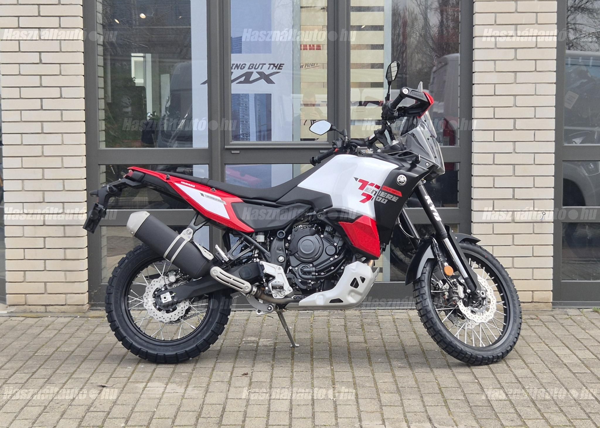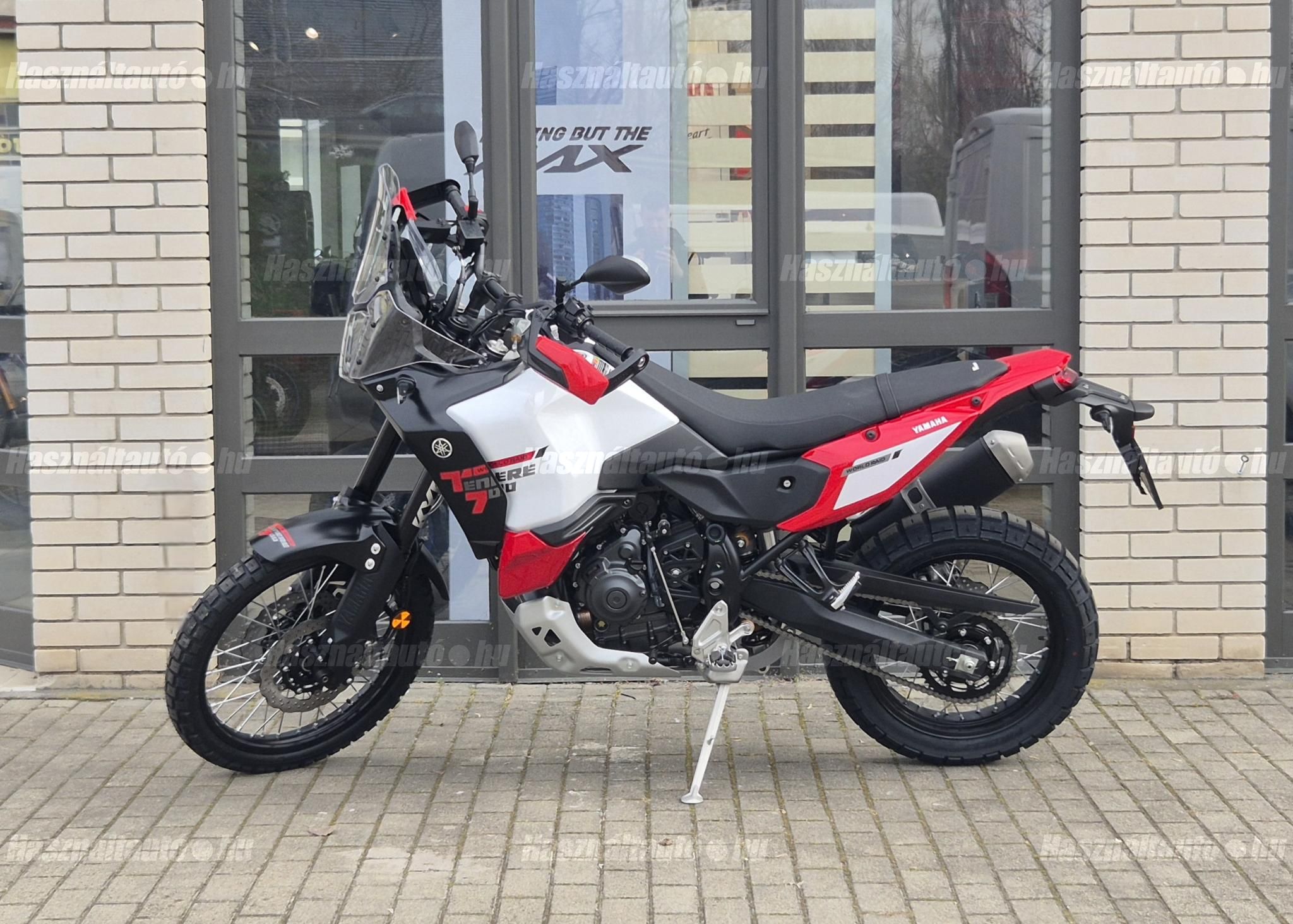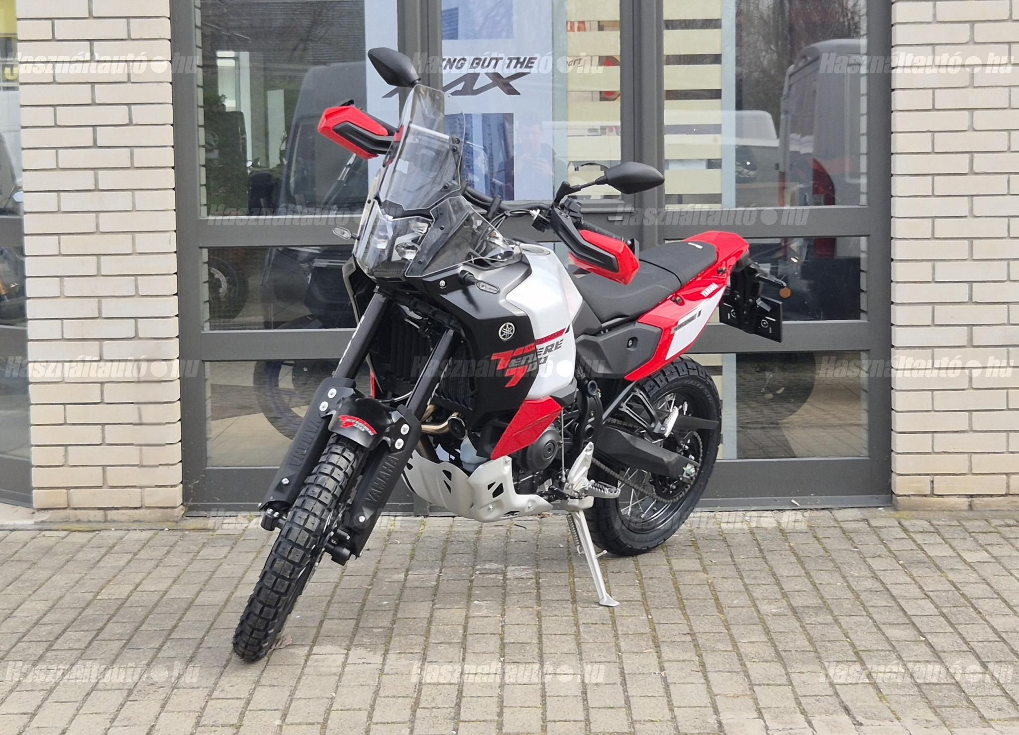 2026-os World Raid KÉSZLETEN, szalonunkban megtekinthető! Elérhető piros-fehér és fekete színekben! Autó-motor beszámítási lehetőséggel is várunk! Már 20 % kezdőrészlettel elvihető. Kíváncsi vagy a konkrét lehetőségekre? Ne várj tovább, beszéljünk róla! További információk személyesen, vagy telefonon!Megérkezett az új Yamaha Ténéré 700 World Raid MY26 exkluzív fejlesztésekkel, a legmodernebb technológiával és kalandvágyat ébresztő dizájnnal. A népszerű 690 cm EU5+ CP2 motor legújabb verziója.Yamaha Chip Controlled Throttle (YCC-T) két vezetési móddal: SPORT és EXPLORER6 tengelyes IMU dőlésszögfüggő tapadásellenőrzéshez (TCS), driftellenőrzéshez (SCS) három üzemmód STREET, OFF ROAD és OFF. Kanyar-ABS offroad üzemmódokkal. Új KYB futómű 43 mm helyett 46 mm, nagyobb rugóúttal a maximális irányíthatóság és kényelem érdekében, új 16 fokozatú kormánycsillapító, új 23 literes dupla tartályok (1,5 kg-mal könnyebbek) akár 500 km-es hatótávolsághoz.Új 6,3 hüvelykes TFT színes kijelző három elrendezéssel: STREET, EXPLORER, RAID.Tempomat és sebességkorlátozó a nyugodt hosszú távú utazásokhoz, LED-es fényszórók, USB-C csatlakozó, okostelefon-csatlakozás a Yamaha MyRide alkalmazáson keresztül. Új szélvédő (levehető oldalsó terelők), újratervezett burkolat és egy darabból álló rally ülés az optimális mozgásszabadságért, robusztus alumínium lengőkar, súlyos öntéssel gyártva. Új, könnyű acélcső gerinc/kettős hurkos váz, Pirelli Scorpion Rally STR gumiabroncsok 50/50 közúti/terep teljesítményhez. Színek: Redline White és Midnight Black.